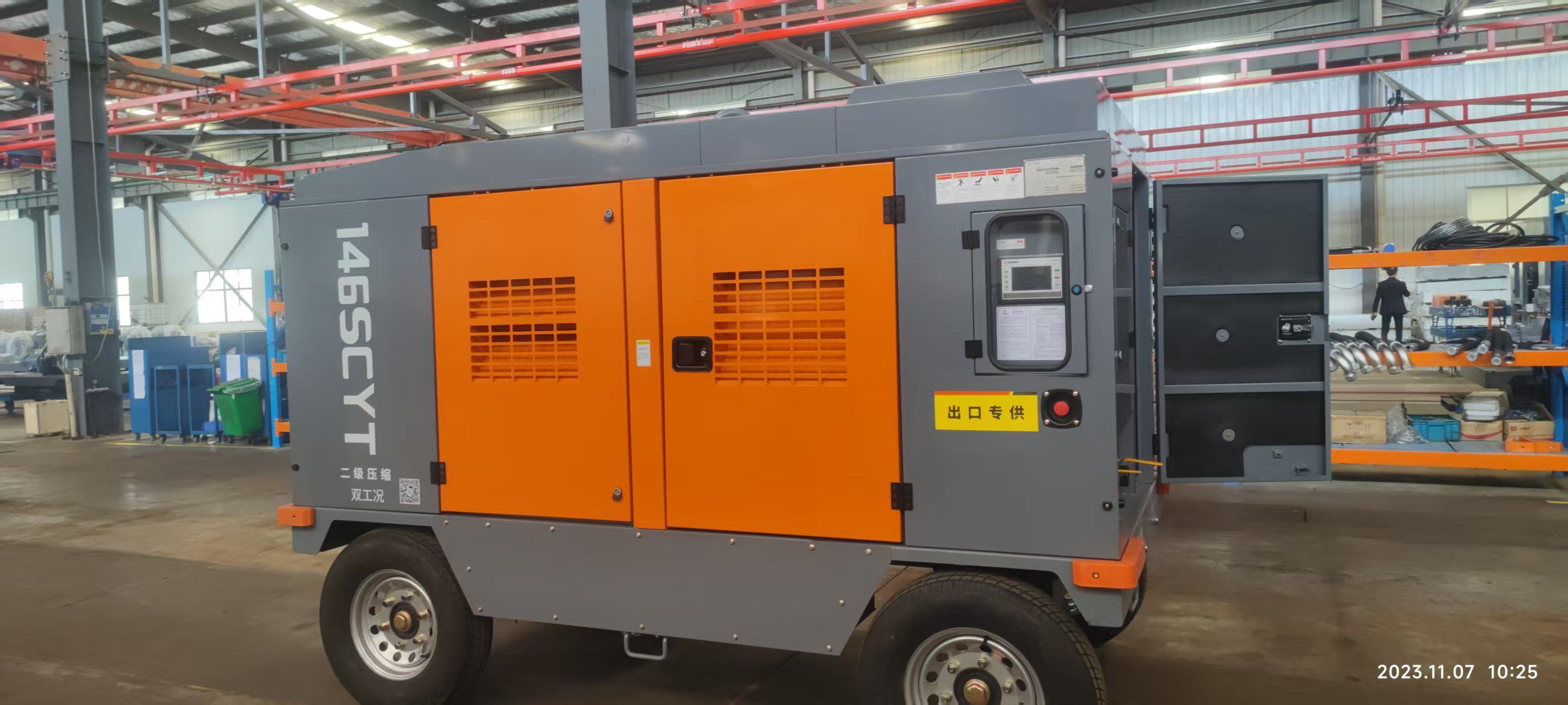 2.产品双压力设计,其中低压时排气量可加大15-20%,一键自由切换;低压时更多配套工程、矿山项目的支护及其他设备的气源;高压时更多配套高风压潜孔冲击器凿岩及深孔排渣排泥;