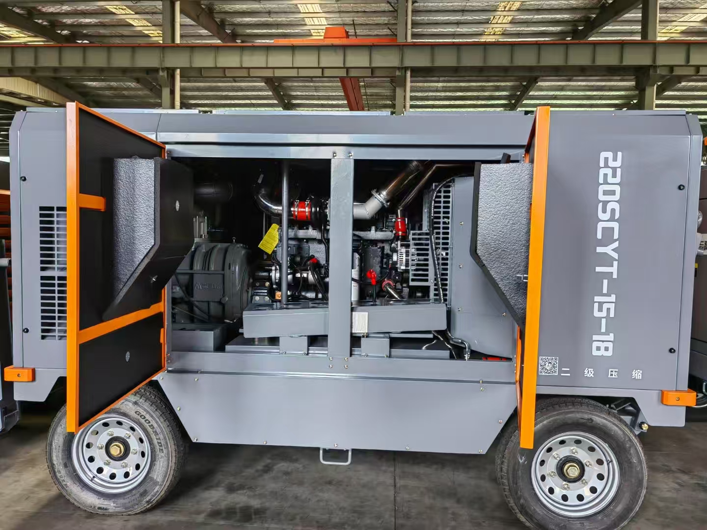 2.产品双压力设计,其中低压时排气量可加大15-20%,一键自由切换;低压时更多配套工程、矿山项目的支护及其他设备的气源;高压时更多配套高风压潜孔冲击器凿岩及深孔排渣排泥;